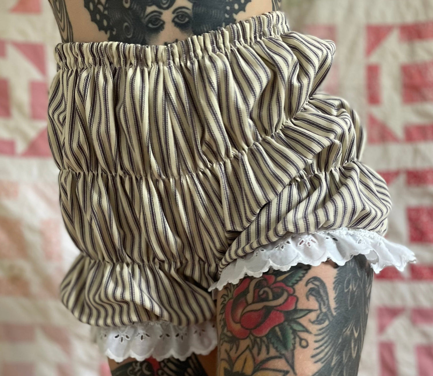 A special collaboration. Chainstitch embroidery done by Chain. Skorts designed and sewn by Sun Love.